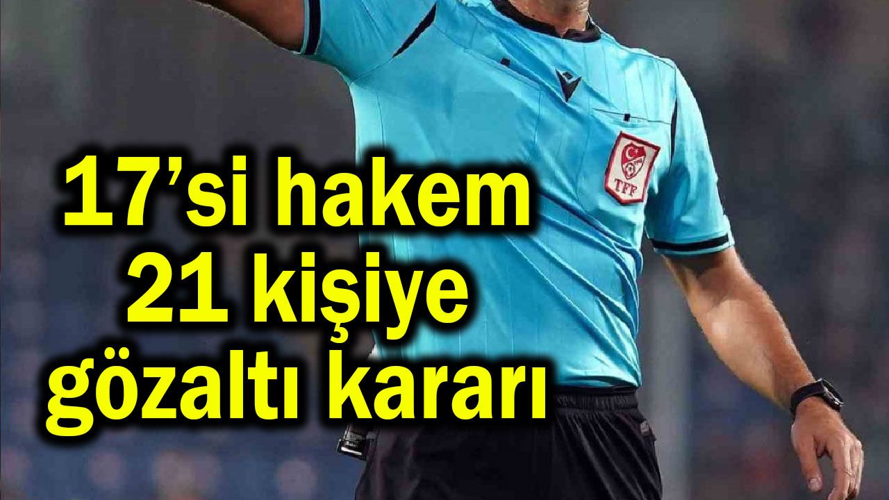 Bahis soruşturması kapsamında 17'si hakem, 1 Trendyol Süper Lig ekibi başkanı ile 1 takımın eski sahibi olmak üzere toplam 21 kişi için gözaltı kararı alındı.
