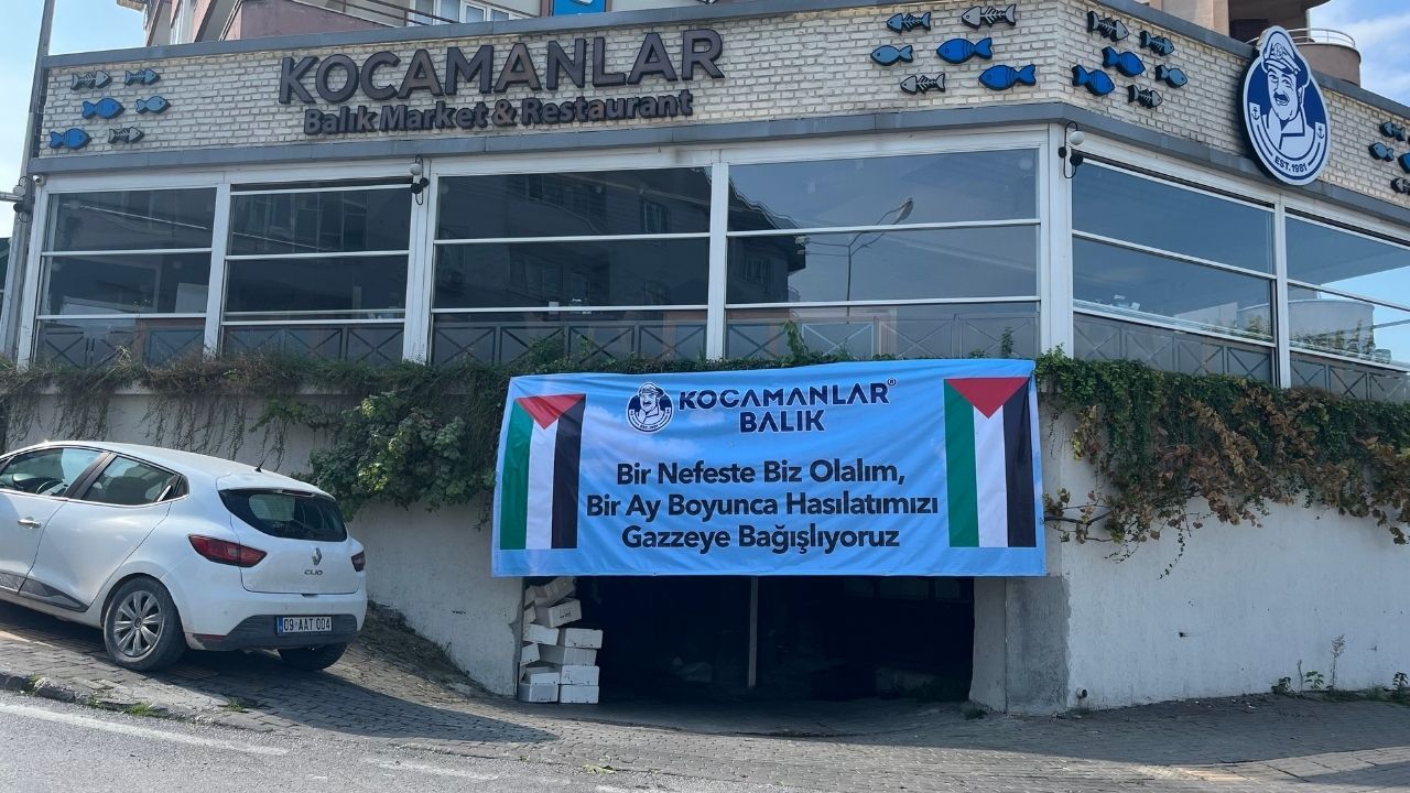 İsrail'in Filistin ve Gazze halkı üzerinde yürüttüğü soykırım ve işgal politikasına dünyanın her yerinden tepkiler sürerken, 8 Ekim'de yapılan ateşkesin ardından yardımlarda bölge halkına ulaştırılmaya çalışılıyor. Dünyanın ve Türkiye'nin dört bir yanından Gazze halkı için yardım yapılırken Bursa'nın ünlü balıkçısı da 5 ayrı restoranındaki 1 aylık hasılatı bağışlama kararı aldı. Firmanın şubelerine astığı Filistin bayrakları ve "Bir nefes de biz olalım, bir ay boyunca hasılatımızı Gazze'ye bağışlıyoruz" gelen müşterilerin dikkatini çekiyor.