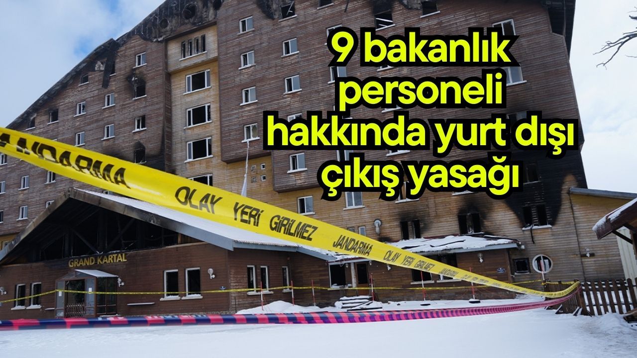 Bolu’da 78 kişinin hayatını kaybettiği Grand Kartal Otel’deki yangına ilişkin davada 9 bakanlık personeline yurt dışı çıkış yasağı getirildi.