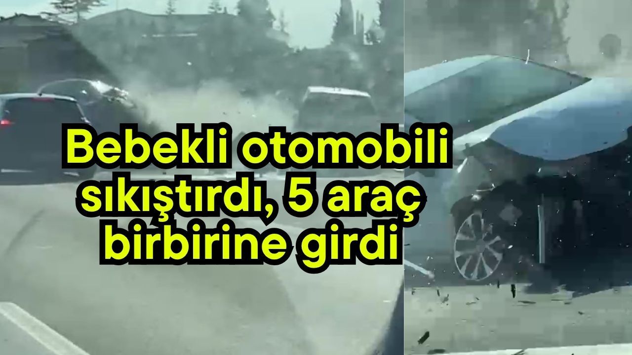 Kaza, dün Kocaeli TEM Otoyolu'da meydana geldi. İddiaya göre, içinde bebek ve çocuğun bulunduğu bir otomobil, başka bir araç sürücüsü tarafından defalarca sıkıştırıldı. Ani fren yaparak ve makas atarak ilerleyen sürücü, ailenin bulunduğu otomobili seyir halindeyken tehlikeye soktu. Bir süre böyle devam eden yolculuk sonrasında maganda sürücü, çocuklu aileyle birlikte toplam 4 araca çarparak kaza yaptı. O anlar, sıkıştırılan aile tarafından cep telefonu kamerası ile görüntülendi. Görüntülerde araçta bebek ile çocuğun olduğu görülürken, kazaya ilişkin anlar yer aldı.