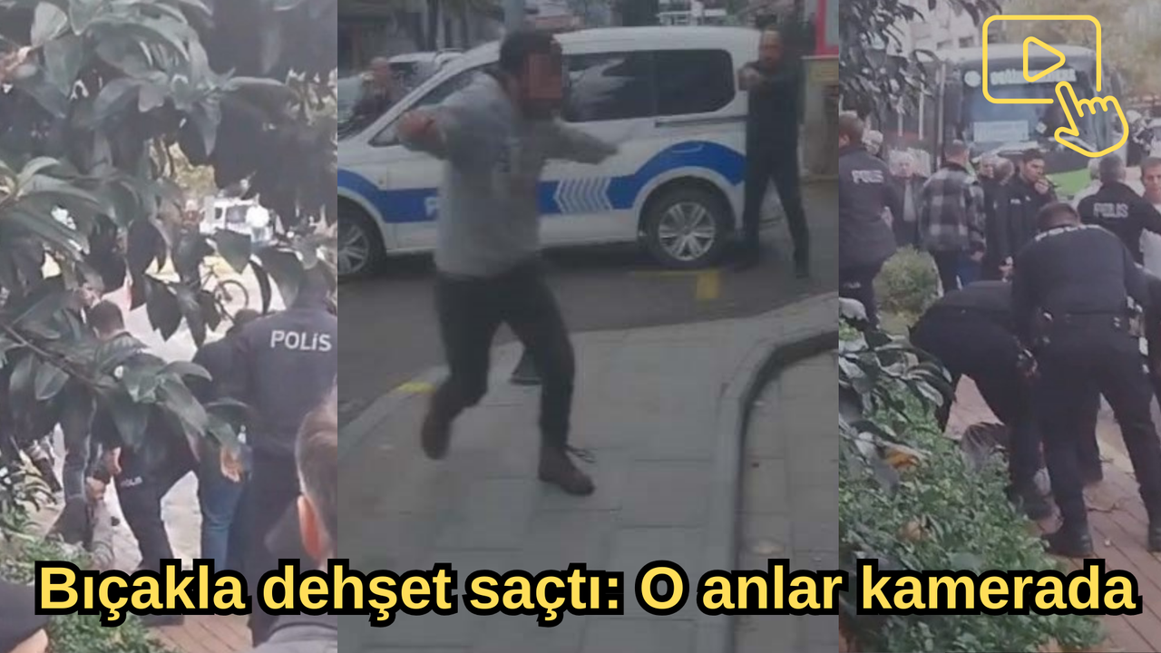 Kocaeli'nin Gölcük ilçesinde mukavemet gösterdiği polis tarafından vurularak etkisiz hale getirilen şüphelinin elindeki bıçakla dehşet saçtığı anların görüntüsü ortaya çıktı.