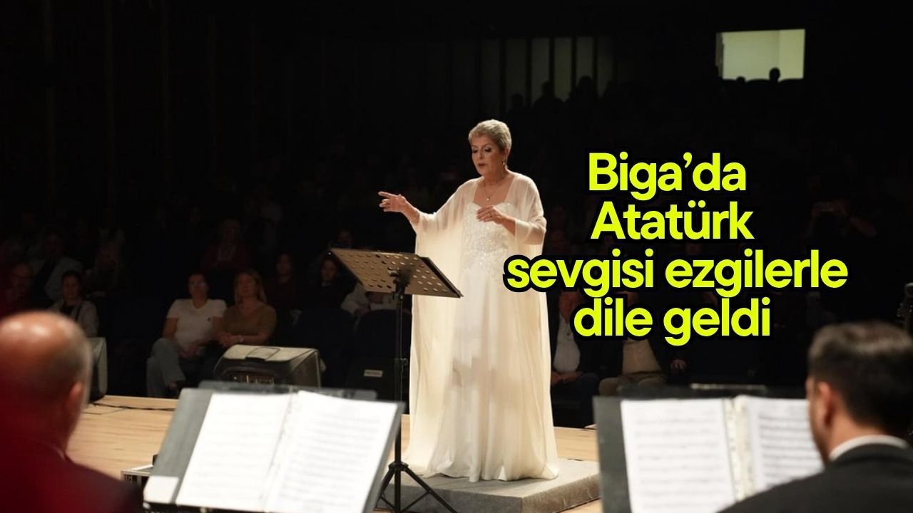 Biga Belediyesi tarafından Ulu Önder Gazi Mustafa Kemal Atatürk’ü anmak amacıyla düzenlenen özel program, duygu ve sevgi dolu anlara sahne oldu. “Ata’mızı Sevgiyle Anıyoruz” temasıyla gerçekleşen etkinlikte, Şef Şerife Gümülcine yönetimindeki Biga Belediye Korosu, Atatürk’ün sevdiği ezgileri seslendirerek izleyenlere unutulmaz bir gece yaşattı. Program boyunca salonda sevgi, özlem ve saygı dolu bir atmosfer hâkimdi. Koro üyeleri, özenle hazırlanan repertuarlarında Atatürk’ün en sevdiği eserleri seslendirirken, vatandaşlar da bu anlamlı geceye duygusal anlarla eşlik etti. Her notada Atatürk’e duyulan sevgi ve minnet yankılandı.