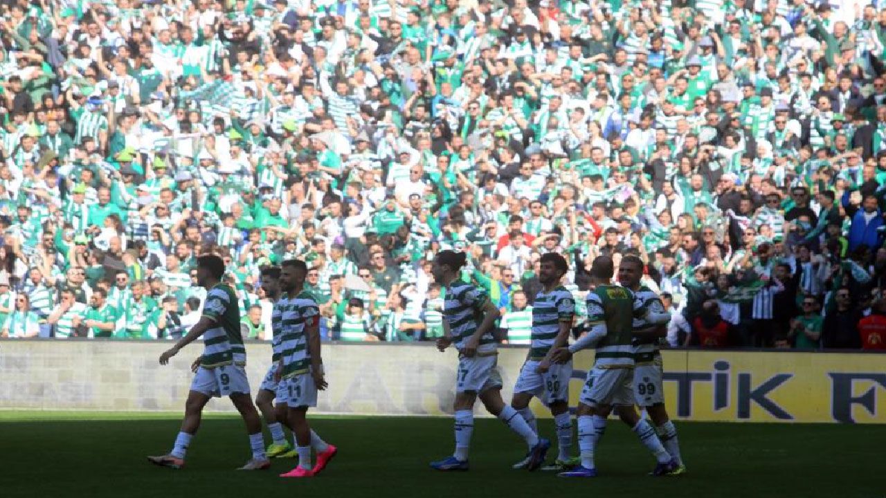 Tribünlerin tıklım tıklım dolduğu tarihi maçta Bursaspor 1. Lig biletini kaptı.