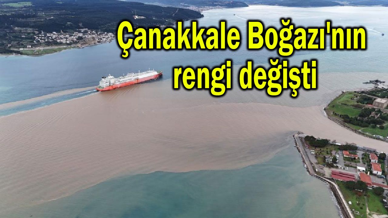 Çanakkale Boğazı'nda denizin bir bölümü, sağanak yağış sonrası farklı bölgelerden boğaza akan çamurlu su nedeniyle kahverengiye döndü. Boğazın renginin değiştiği dron ile görüntülendi.