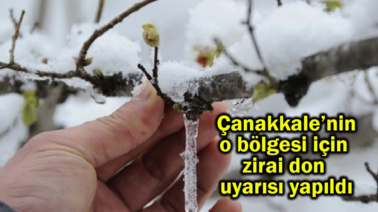 Meteoroloji 2.Bölge Müdürlüğü Tahmin ve Erken Uyarı Merkezi’nden ‘Çanakkale’nin İç ve Kuzey Kesimlerinde Zirai Don Riskine Dikkat!’ başlığı altında yapılan açıklamada, “Yapılan son değerlendirmelere göre; Çanakkale il geneli 27.12.025 Cumartesi sabahından itibaren 02 Ocak 2026 Cuma sabah saatlerine kadar yeni bir soğuk havanın etkisi altında kalacaktır. Etkili olması beklenen soğuk hava nedeniyle; gece sıcaklıklarının 0 ⁰C derecenin altına inerek iç ve kuzey kesimlerinde hafif kuvvette, yüksek rakımlı yerlerde orta yer yer kuvvetli zirai don olayı tahmin edilmektedir. Tarımsal faaliyetlerle uğraşan vatandaşlarımızın Çevre Şehircilik ve İklim Değişikliği Bakanlığı Meteoroloji Genel Müdürlüğü ve Meteoroloji 2. Bölge Müdürlüğü Bölge Tahmin ve Erken Uyarı Merkezi tarafından il ve ilçeler için hazırlanan sıcaklık tahminlerini dikkatle takip etmeleri ve zirai don tehlikesine karşı tedbirli olmaları önem arz etmektedir” denildi.