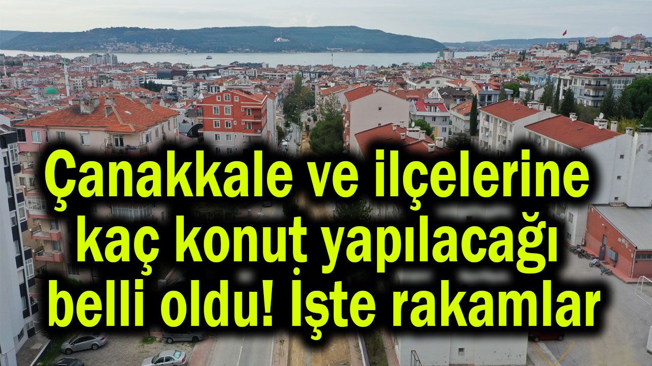 81 ilde 500 bin konutun inşa edileceği ‘Yüzyılın Konut Projesi’ kapsamında Çanakkale’de toplam 3 bin 276 konut yapılacak. Bunlarda 350’si kent merkezi olmak üzere, Ayvacık’ta 250, Biga’da 450, Karabiga’da 100, Çan’da 300, Ezine’de 450, Gelibolu’da 300 ve Yenice Kalkım’da 76 konut yükselecek. Yüzde 10 peşinat, 240 ay vade ile ödemesi yapılacak konutların teslimat başlangıç tarih olarak 2027 Mart işaret edildi.