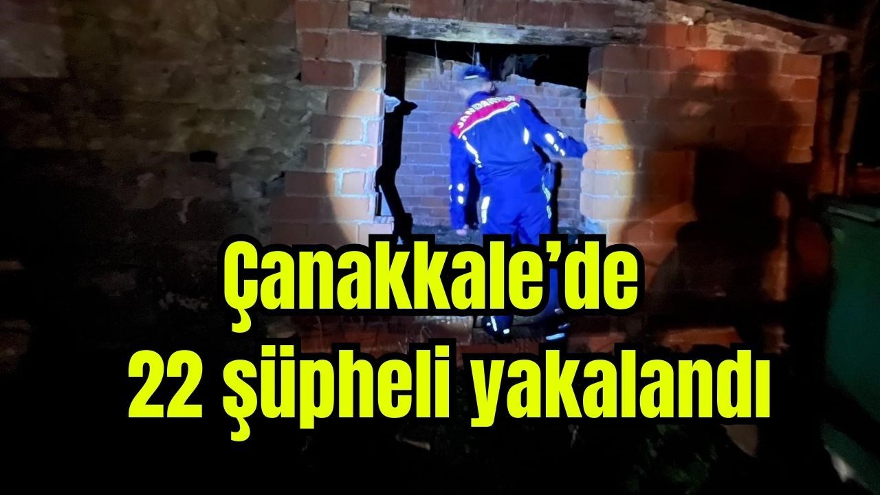 Çanakkale İl Jandarma Komutanlığı ekiplerince kentte asayişi sağlamak amacıyla 15 Ocak günü ‘Huzurlu Sokaklar Güven ve Huzur Uygulaması’ gerçekleştirildi. Jandarma ekipleri kentte sorumluluk alanlarında 10.00 ve 22.00 saatleri arasında çeşitli denetimler gerçekleştirildi. 12 ilçede, gerçekleştirlen uygulamalarda; 132 tim ve 527 personel yer aldı. Yapılan çalışmalarda 115 umuma açık işletme, 90 metruk bina, 66 park ve bahçe kontrol edilirken 3 bin 814 şahıs ve 2 bin 22 araç sorgulandı. Çeşitli suçlardan aranan 22 şüpheli ve 1 araç yakalanırken 21 araç trafikten men edildi.