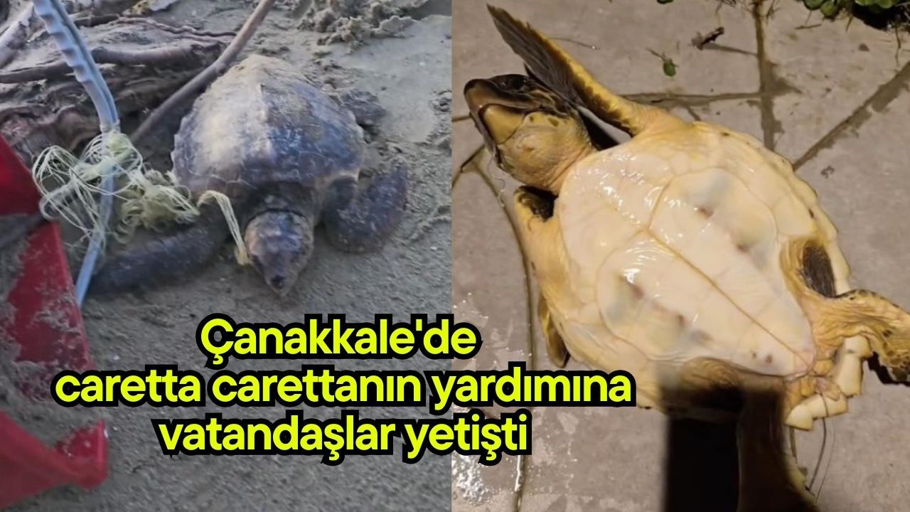 Çanakkale'nin Gökçeada ilçesinde sahilde misina ve ipe dolanan caretta caretta, vatandaşlar tarafından kurtarılarak doğal ortamına salındı.
