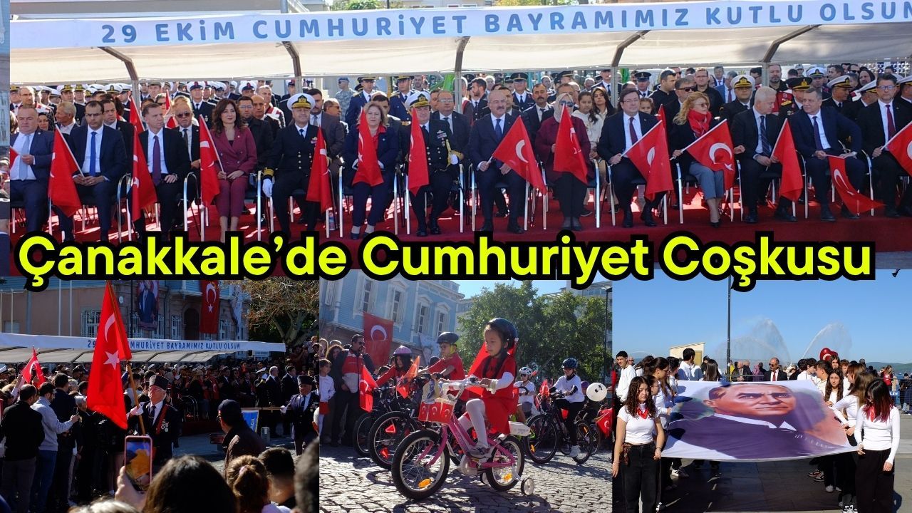Kordon boyunda bulunan Kayserili Ahmet Paşa Caddesi üzerinde gerçekleştirilen tören Vali Doç. Dr. Ömer Toraman, Boğaz ve Garnizon Komutanı Tuğamiral Mustafa Biçen ve Belediye Başkanı Muharrem Erkek’in halkı selamlamasının ardından başladı. Saygı Duruşu ve İstiklal Marşıyla başıyla başlayan Cumhuriyet Bayramı programında Cumhurbaşkanı Recep Tayyip Erdoğan’in mesajı okundu. Ardından Çanakkale Valisi Doç. Dr. Ömer Toraman günün anlam ve önemine ilişkin bir açıklama yaptı. Vali Toraman yaptığı açıklamada “Cumhuriyet Türk milletinin azim, iman ve kararlılıkla verdiği büyük bir mücadelenin, destansı bir dirilişin eseridir. Milletimizin ‘Hakimiyet kayıtsız şartsız milletindir’ ilkesiyle yeniden ayağa kalktığı, iradesini tarihe nakşettiği bir dönüm noktasıdır. Bu büyük miras bin yıldır bu topraklarda var olma iradesin, 1915’te Çanakkale'de, 1922’de Dumlupınar'da vücut kılan kararlılığın devamıdır. Hiç şüphesiz bugünlere kolay gelinmemiştir. Büyük Türk 1912’den 1922’ye kadar süren o zorluğu on yılın ardından küllerinden yeniden doğmuştur. Ve bu yeniden doğuşun en parlak meşalesi işte bu mübarek topraklarda, Çanakkale'de kılmıştır. Çanakkale kahramanlık vatan sevgisi ve fedakarlığın en yüce sembolüdür. Çanakkale geçilmez sözü yalnızca bir savaşın değil bir milletin iradesinin ifadesidir. Bu irade İstiklal Harbimizin de zafere ulaşmasının temel dayanağı olmuştur. Ve bu zaferin mirası 29 Ekim 1023’te Cumhuriyetimizin ilanıyla taçlanmıştır “ ifadelerini kullandı.