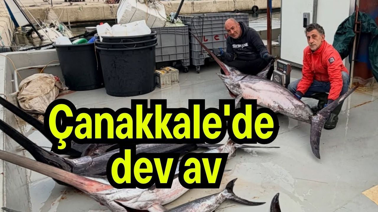 Gökçeada ilçesi açıklarında balıkçıların ağına takılan dev kılıç balığı, görenleri hayrete düşürdü.