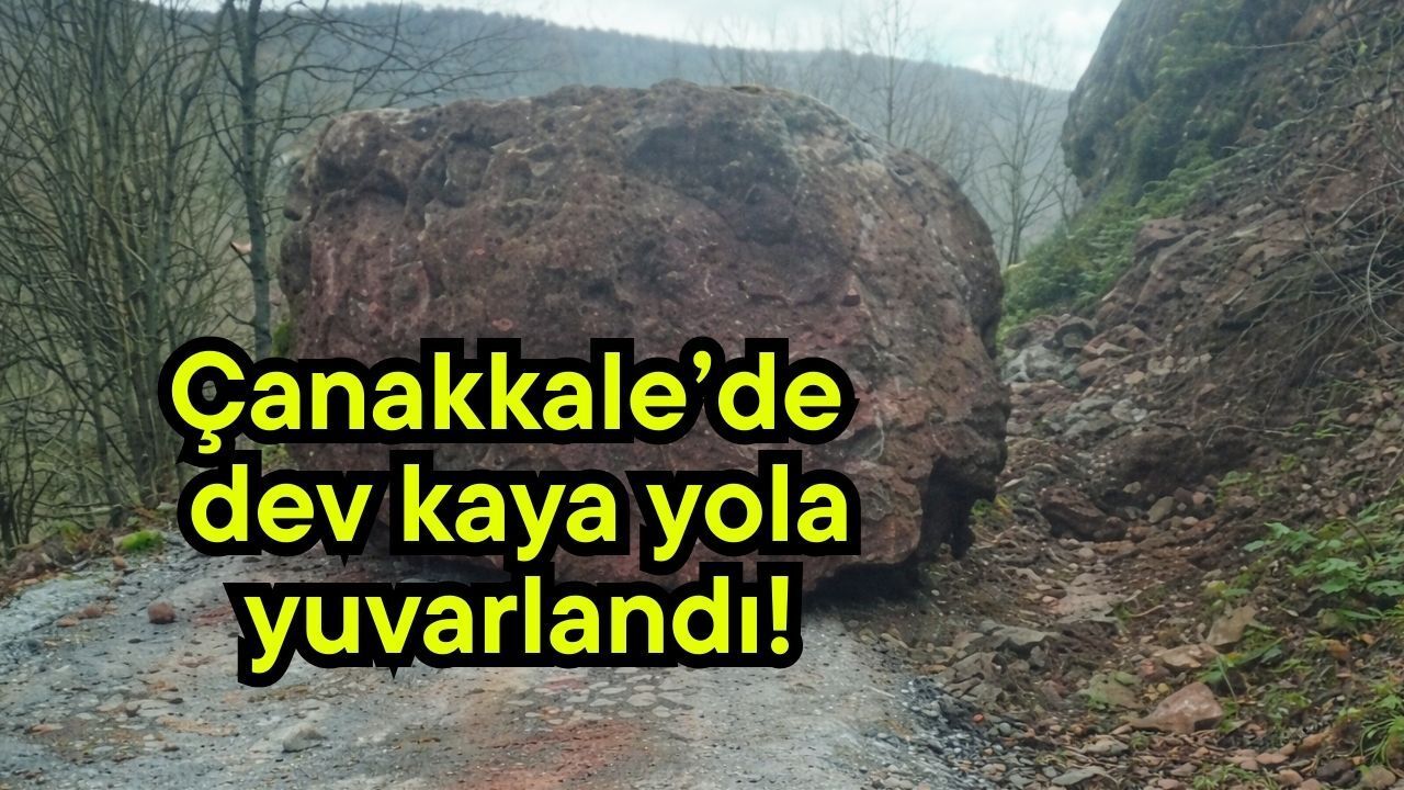 Gönen yolu Develi mevkisinde yamaçtan kopan devasa bir kaya parçası, yola düştü.