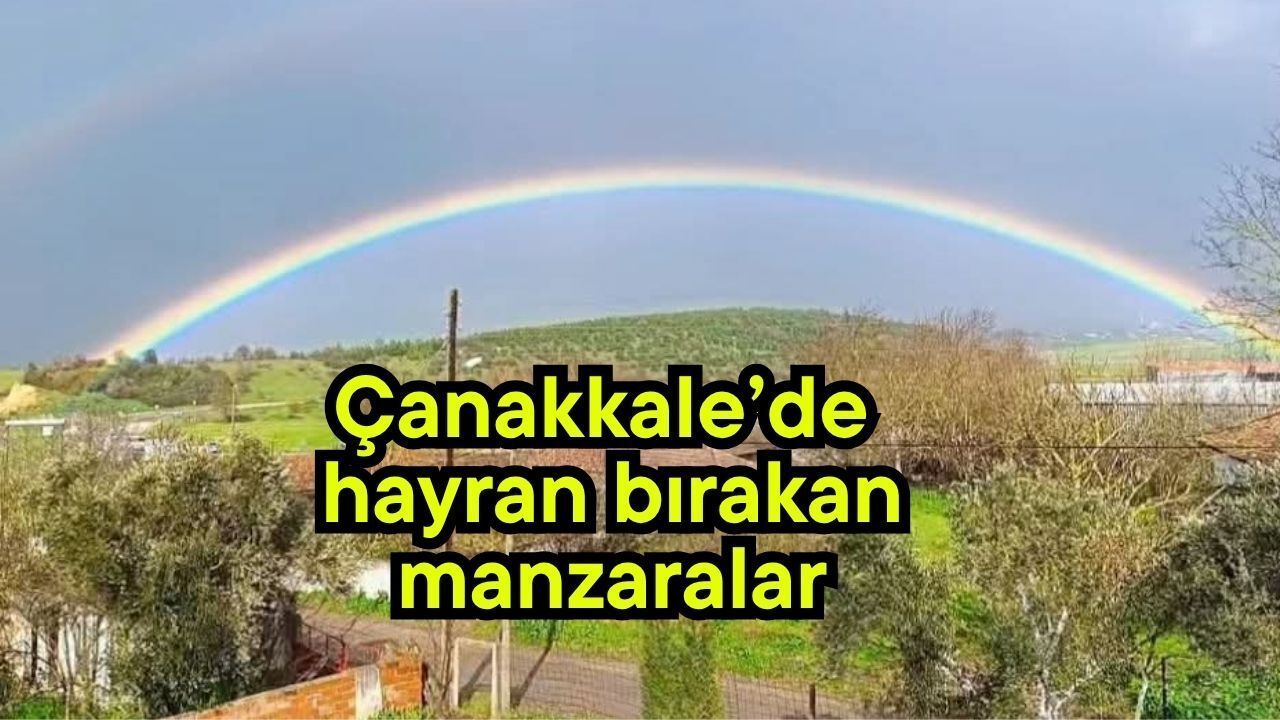 Özellikle Biga ilçesine bağlı Yeniçiftlik Köyü ve Cihadiye Köyü semalarında beliren gökkuşağı manzarası vatandaşları hayran bıraktı.