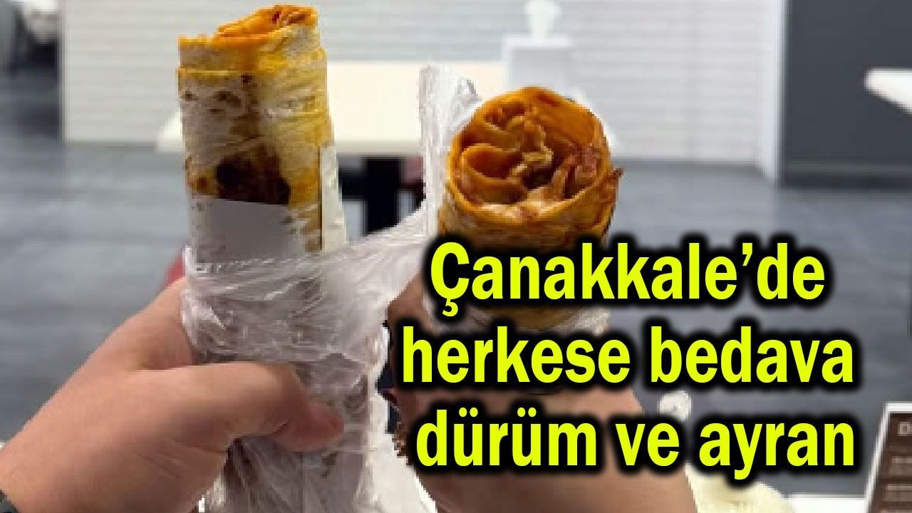 Çanakkale’de Saat Kulesi yakınında faaliyet gösteren 'Acıktım Döner' adlı işletme Ramazan ayı kapsamında düzenlediği etkinlikle vatandaşlara iftara özel ücretsiz dürüm ve ayran dağıtacak. 11 Mart Çarşamba gününe özel olarak 18.30 ile 20.00 saatleri arasında işletmeye gelen vatandaşlara bir dürüm ve bir ayran ücretsiz olarak ikram edilecek.