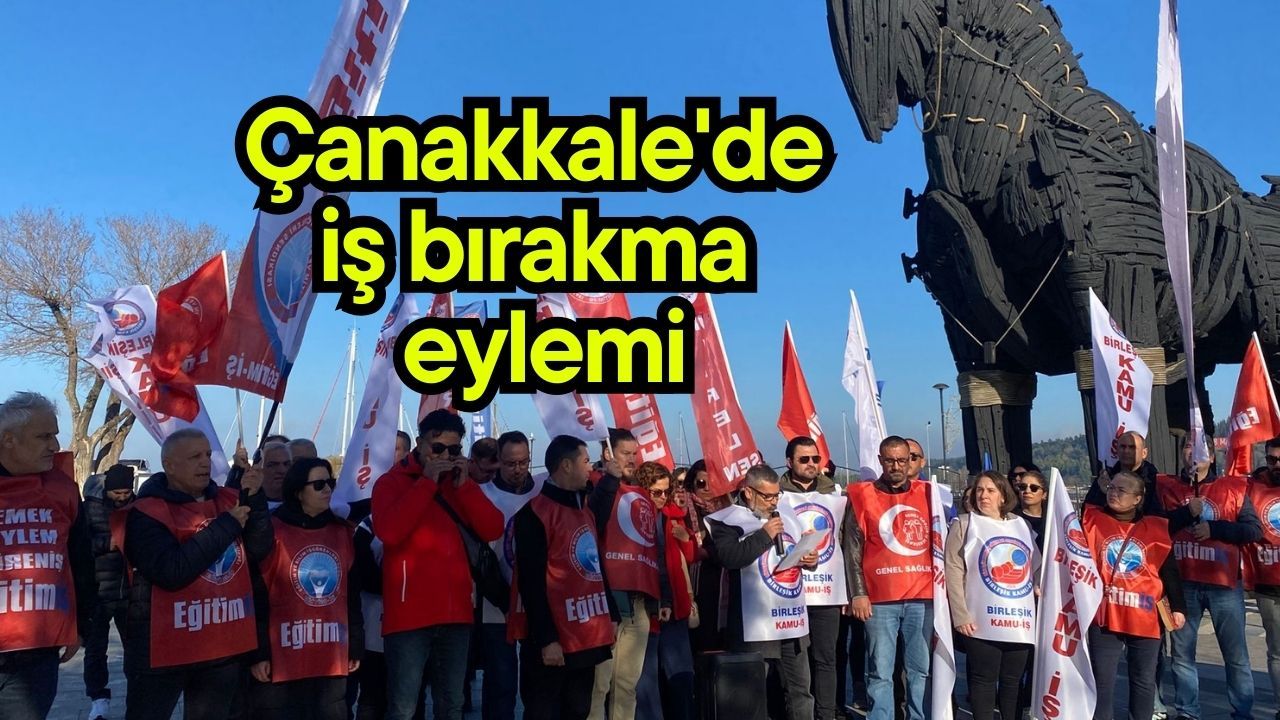 Çanakkale’deki basın açıklaması, Birleşik Kamu-İş Konfederasyonu’na bağlı Eğitim-İş Sendikası üyelerinin katılımıyla kentin simge noktalarından biri olan Truva Atı önünde yapıldı. Açıklamayı Birleşik Kamu-İş Çanakkale İl Başkanı Hasan Kart okudu.