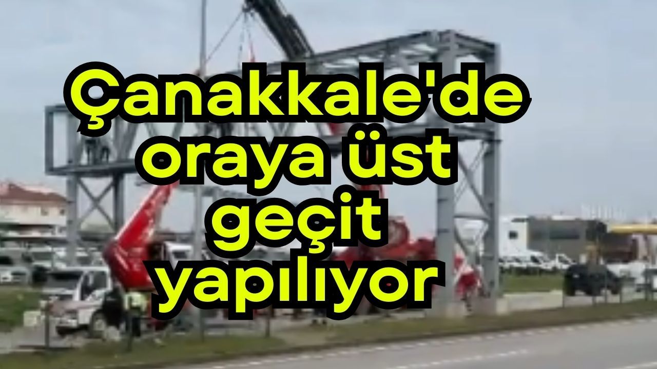Çanakkale–İzmir yolu üzerinde, Ford servisine yakın bir noktada yapımı süren üst geçit çalışmaları kapsamında vinç ekipleri, üst geçidin parçalarını yerleştirmeye başladı.