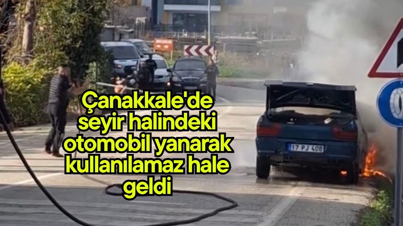 Çanakkale'nin Eceabat ilçesinde seyir halinde olan bir otomobil yanarak kullanılamaz hale geldi.
