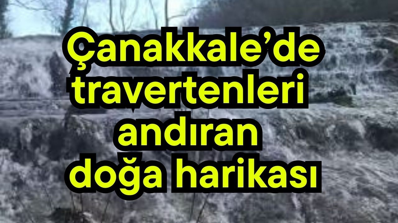 Çanakkale’nin Biga ilçesine bağlı Dereköy köy mevkiinde bulunan ve travertenleri andıran görüntüsüyle dikkat çeken dere, doğaseverlerin ilgisini çekiyor.