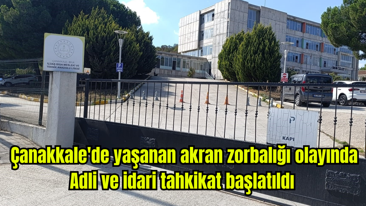 Çanakkale Valiliği'nin akran zorbalığına ilişkin yaptığı açıklamada, "25 Eylül 2025 Perşembe günü Biga İÇDAŞ Mesleki ve Teknik Anadolu Lisesi'nde yaşanan üzücü olayla ilgili olarak bilgilendirme yapılmasına ihtiyaç duyulmuştur. Söz konusu olay hakkında Biga Cumhuriyet Başsavcılığı koordinesinde derhal adlî tahkikat başlatılmıştır. Ayrıca, Valiliği'mizce eğitim müfettişi görevlendirilerek idari tahkikata da başlanmıştır. Yaşanan olay nedeniyle öğrencimize ve ailesine geçmiş olsun dileklerimizi iletiyor, öğrencimizin sağlık durumu başta olmak üzere sürecin titizlikle takip edildiğini kamuoyunun bilgisine sunuyoruz" ifadelerine yer verildi.