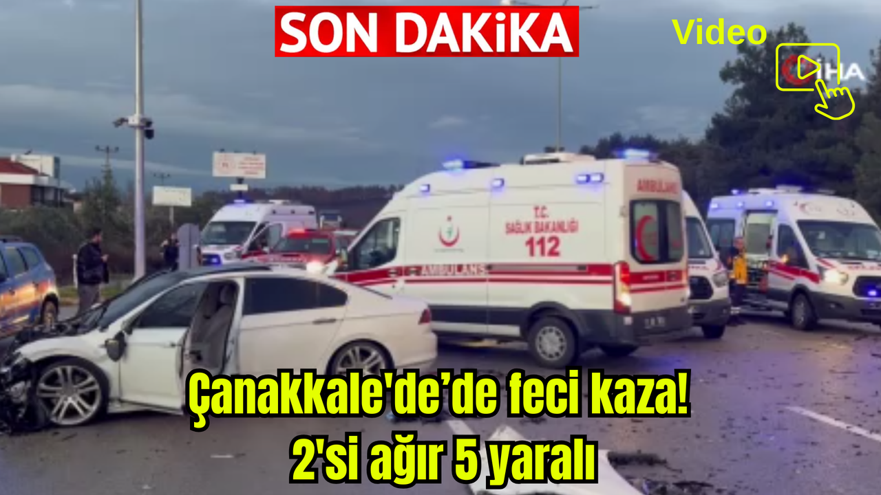 Çanakkale'de 2 otomobilin çarpıştığı kazada 2'si ağır toplam 5 kişi yaralandı.