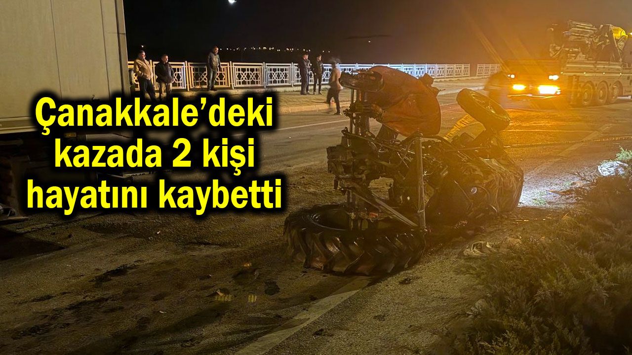 İlk gelen bilgilere göre kaza, Çanakkale-İzmir yolunda Bozcaada kavşağında tırın traktöre çarpması sonucu meydana geldi. Kazada 2 kişinin hayatını kaybettiği öğrenildi. Kazayla ilgili soruşturma başlatıldı.