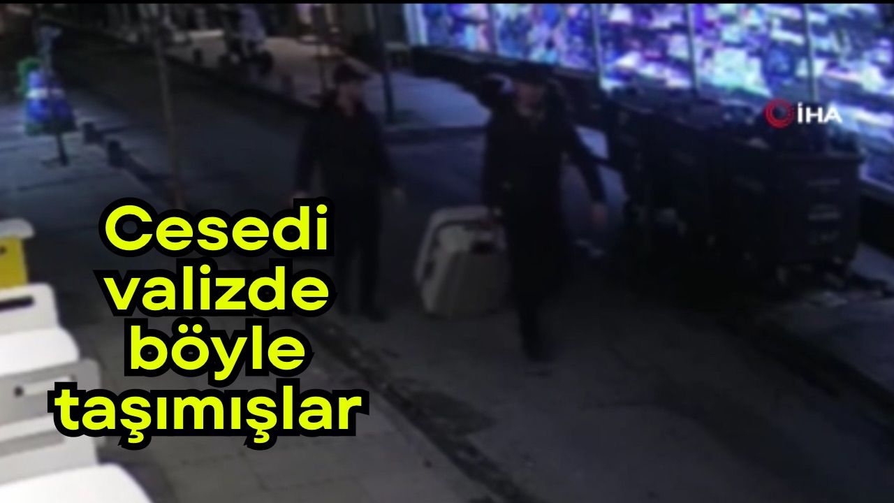 İki zanlının parçalanmış kadın cesedini valize koyup taşıdığı anlar güvenlik kameralarına da yansıdı. Görüntülerde şahıslar valize koydukları cesedi güçlükle taşıyarak çöp konteynarın yanına getiriyor. Etrafı kolaçan eden zanlılar cesedi konteynıra bırakıyor.