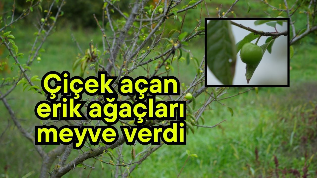 Kocaeli'nin Kartepe ilçesine bağlı Derbent Mahallesi'nde yaşayan İsmail Uzun'un bahçesinde şaşırtan ilginç bir olay yaşandı. Normal şartlarda ilkbahar aylarında çiçek açıp yaz aylarında meyve veren erik ağaçları, bu yıl mevsim normallerinin dışında eylül ayında yeniden çiçek açarak ekim ayında meyve verdi.