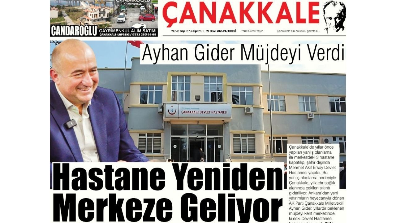 Burası Çanakkale 20 Ocak Pazartesi sayısı