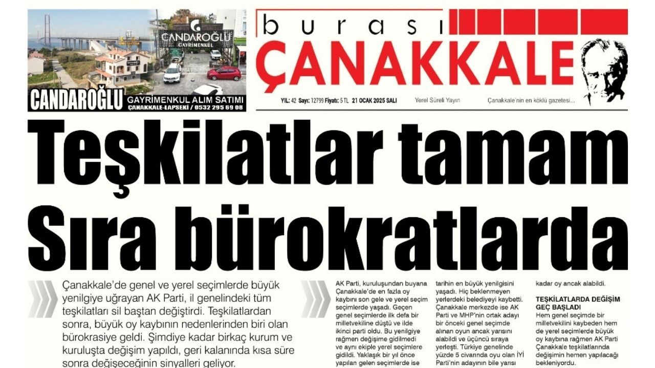 Burası Çanakkale 21 Ocak Salı sayısı
