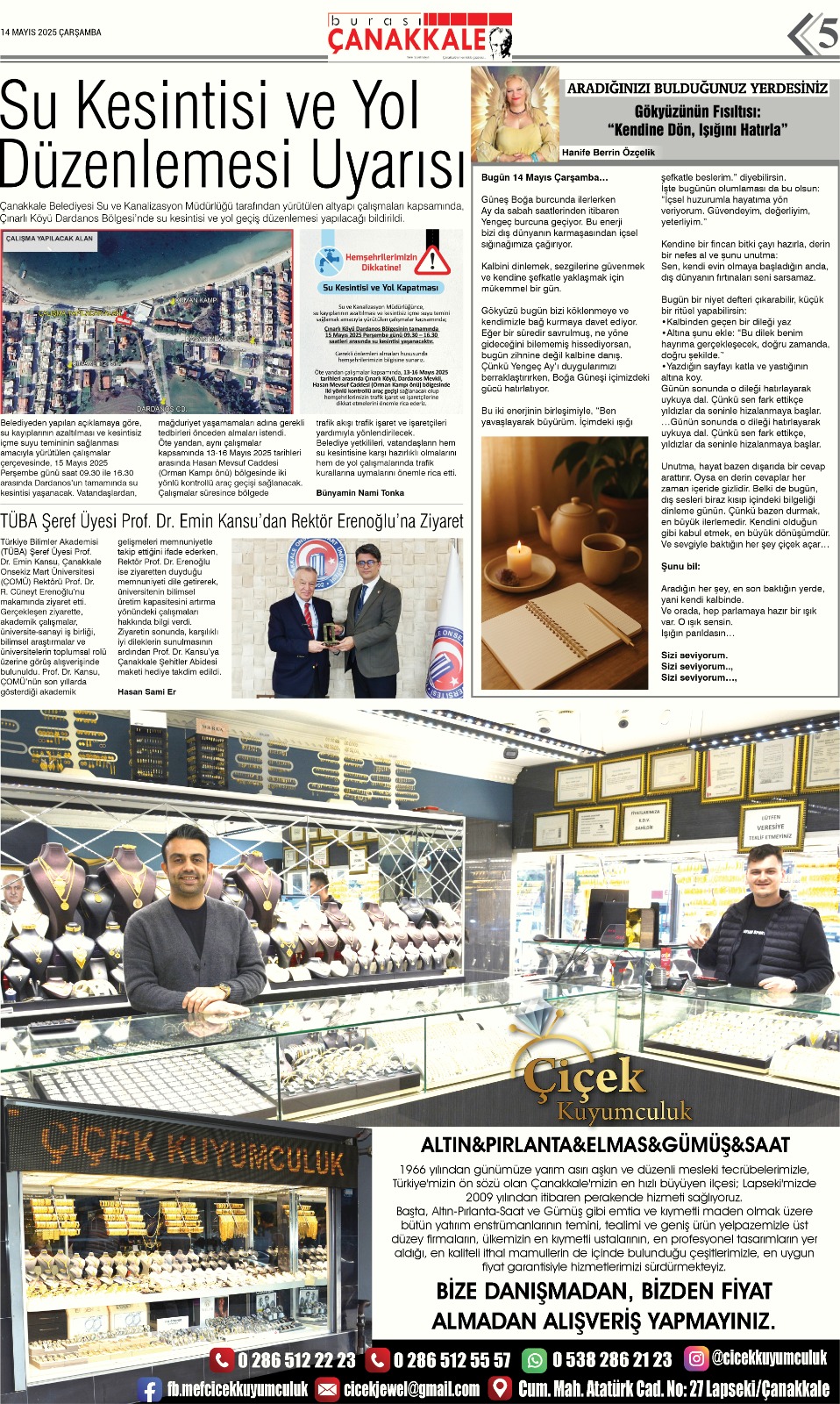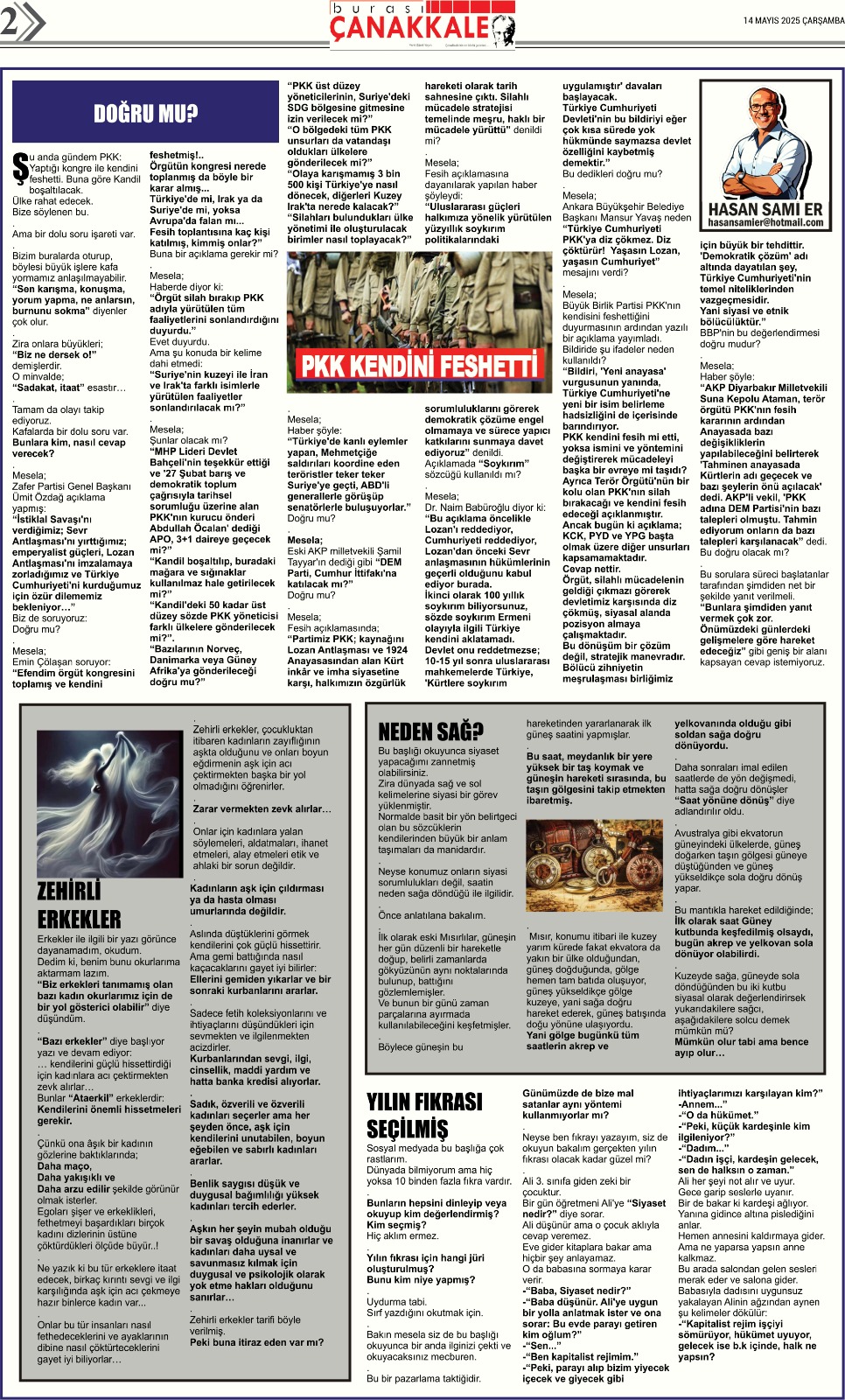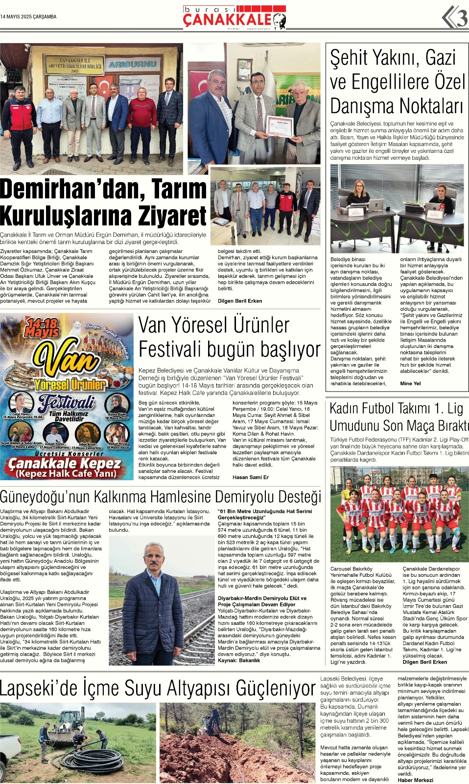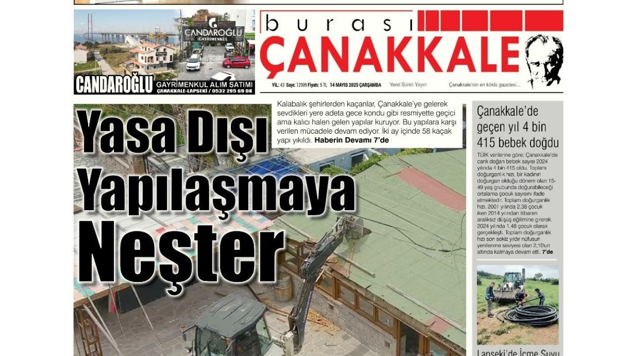 Burası Çanakkale Gazetesi 14 Mayıs Çarşamba