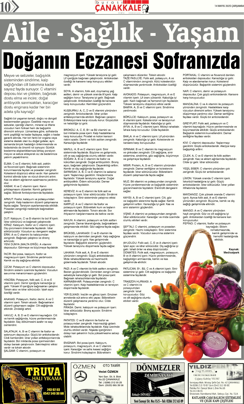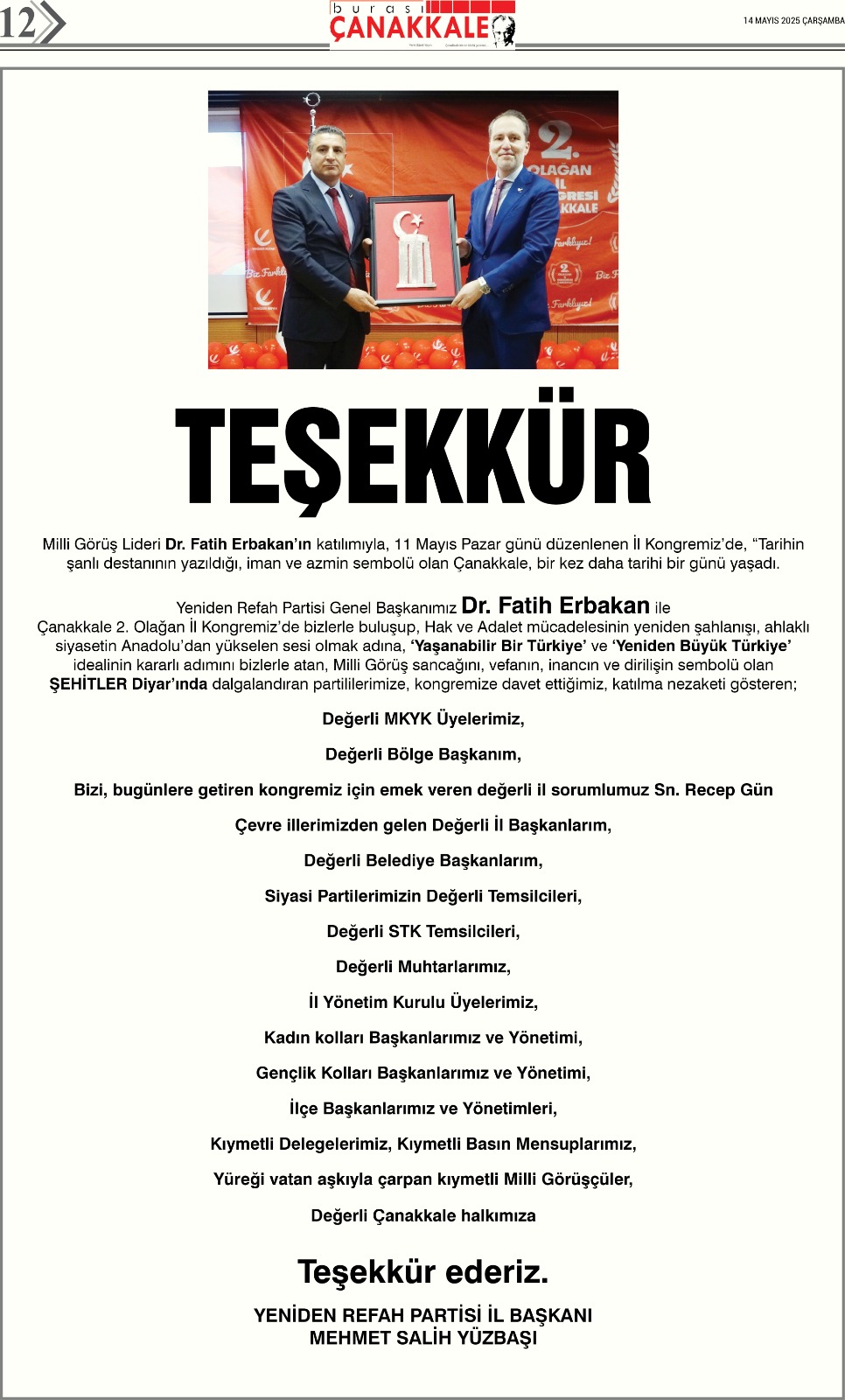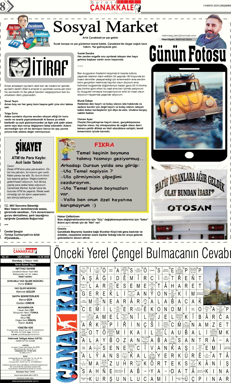 Burası Çanakkale Gazetesi 14 Mayıs Çarşamba