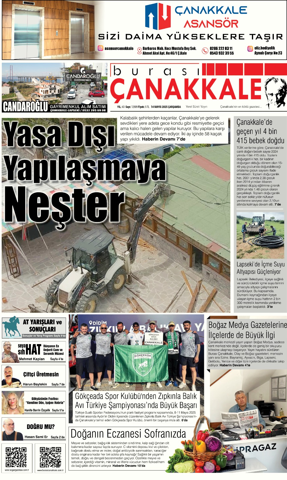 Burası Çanakkale Gazetesi 14 Mayıs Çarşamba sayısı
