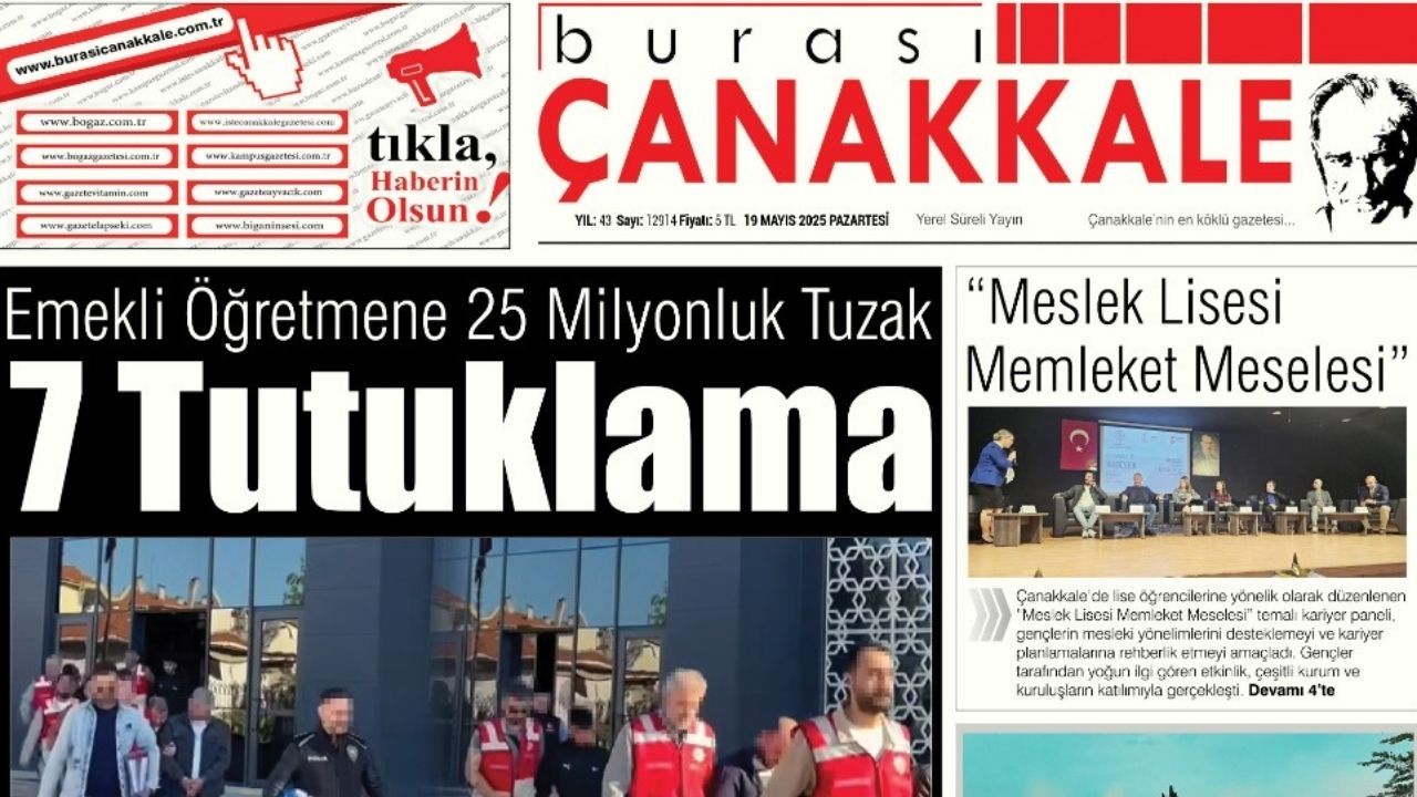 Burası Çanakkale Gazetesi 19 Mayıs Pazartesi