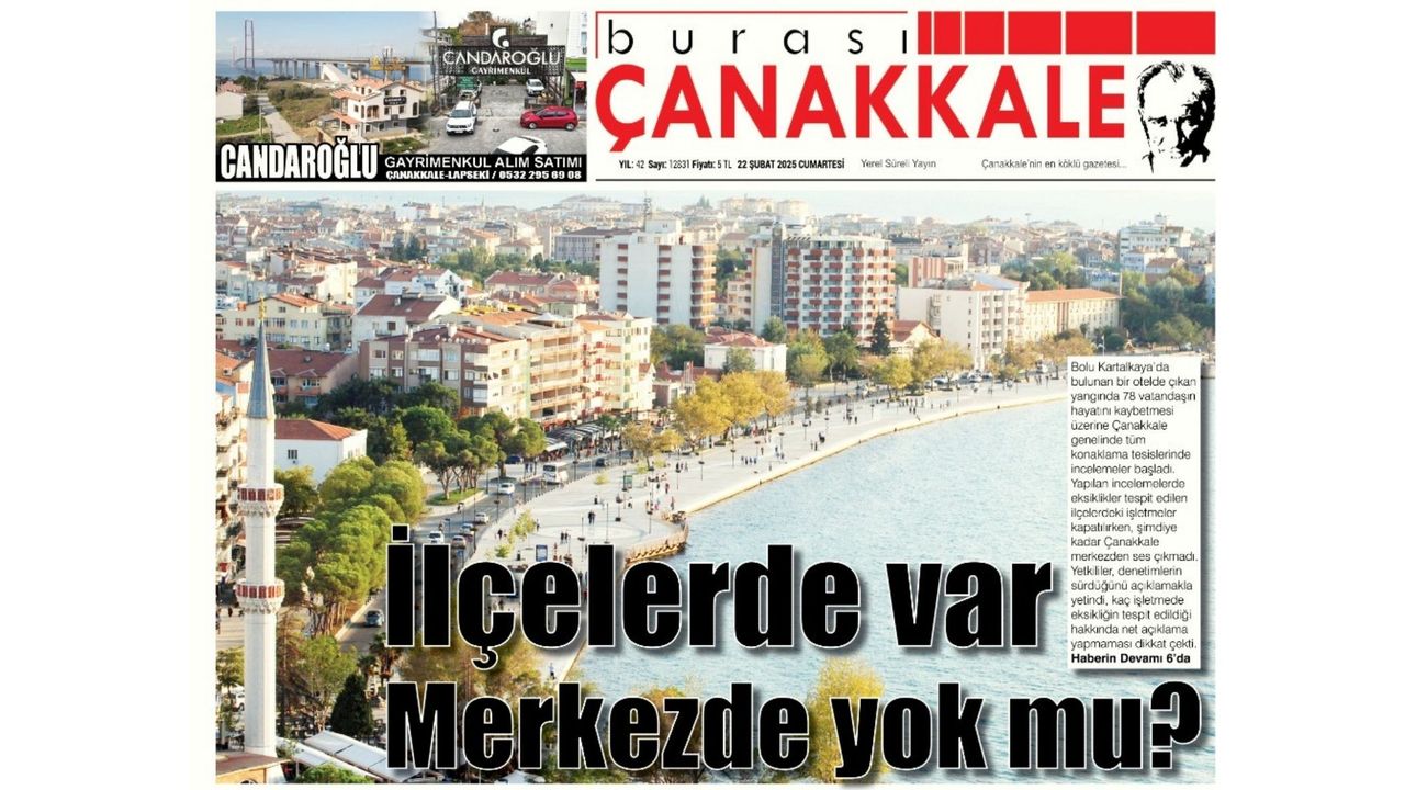 Burası Çanakkale Gazetesi 22 Şubat Cumartesi