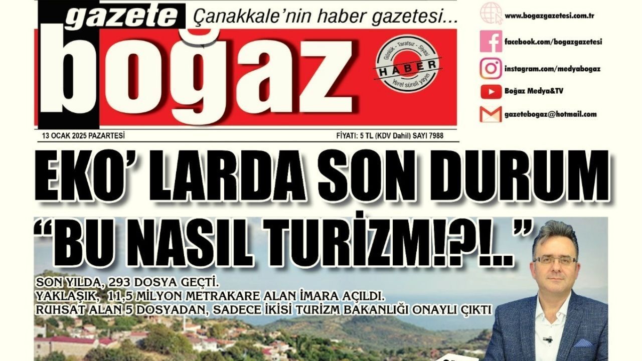 Çanakkale Boğaz Gazetesi 13 Ocak Pazartesi sayısı