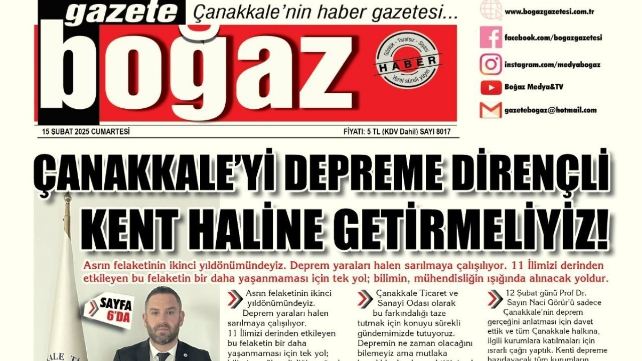 Çanakkale Boğaz Gazetesi 15 Şubat Cumartesi