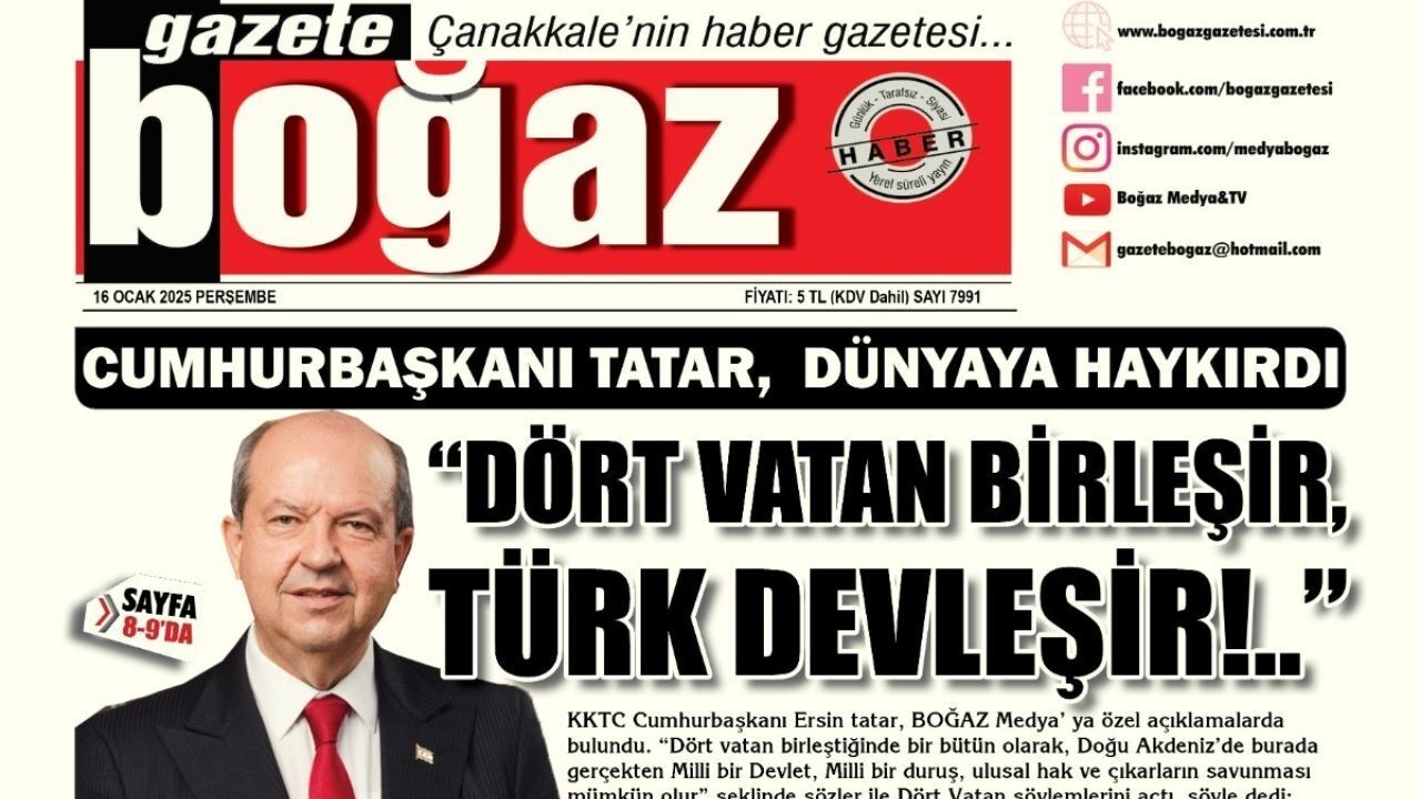 Çanakkale Boğaz Gazetesi 16 Ocak Perşembe sayısı