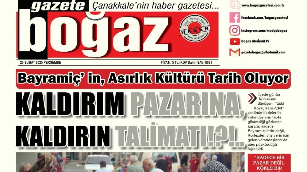 Çanakkale Boğaz Gazetesi 20 Şubat Perşembe sayısı.