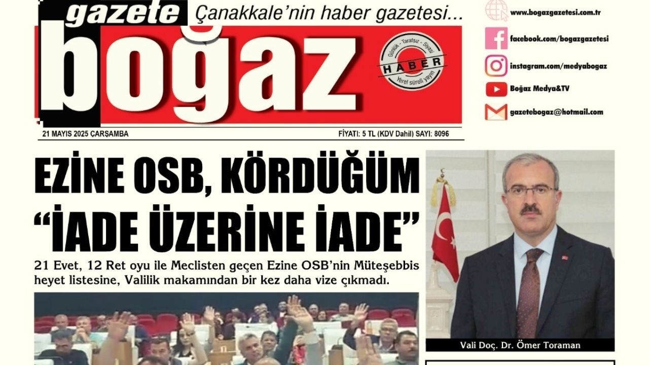 Çanakkale Boğaz Gazetesi 21 Mayıs Çarşamba