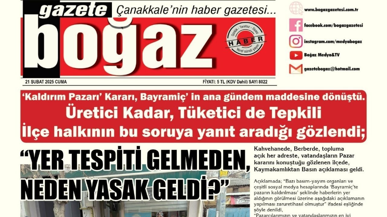 Çanakkale Boğaz Gazetesi 21 Şubat Cuma sayısı.