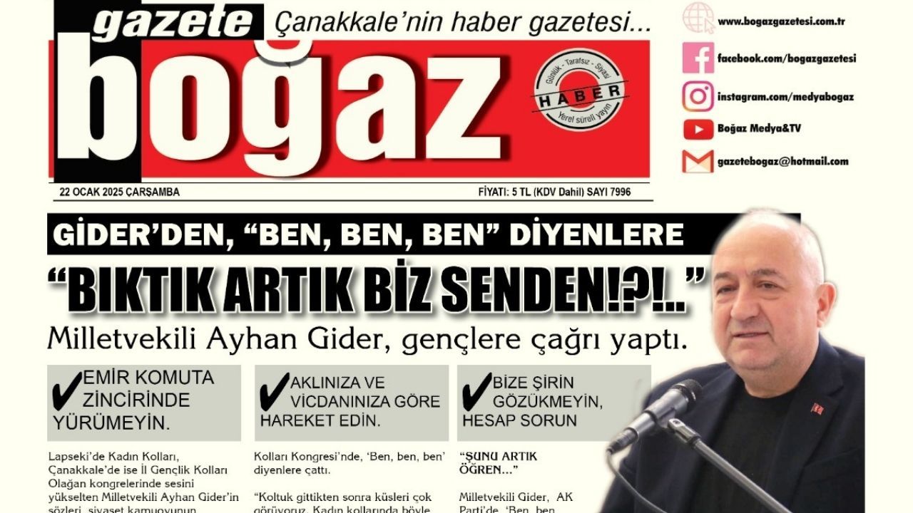 Çanakkale Boğaz Gazetesi 22 Ocak Çarşamba