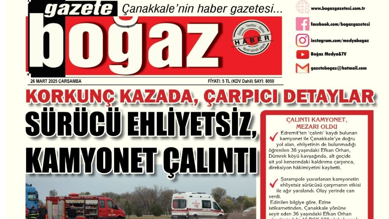 Çanakkale Boğaz Gazetesi 26 Mart Çarşamba