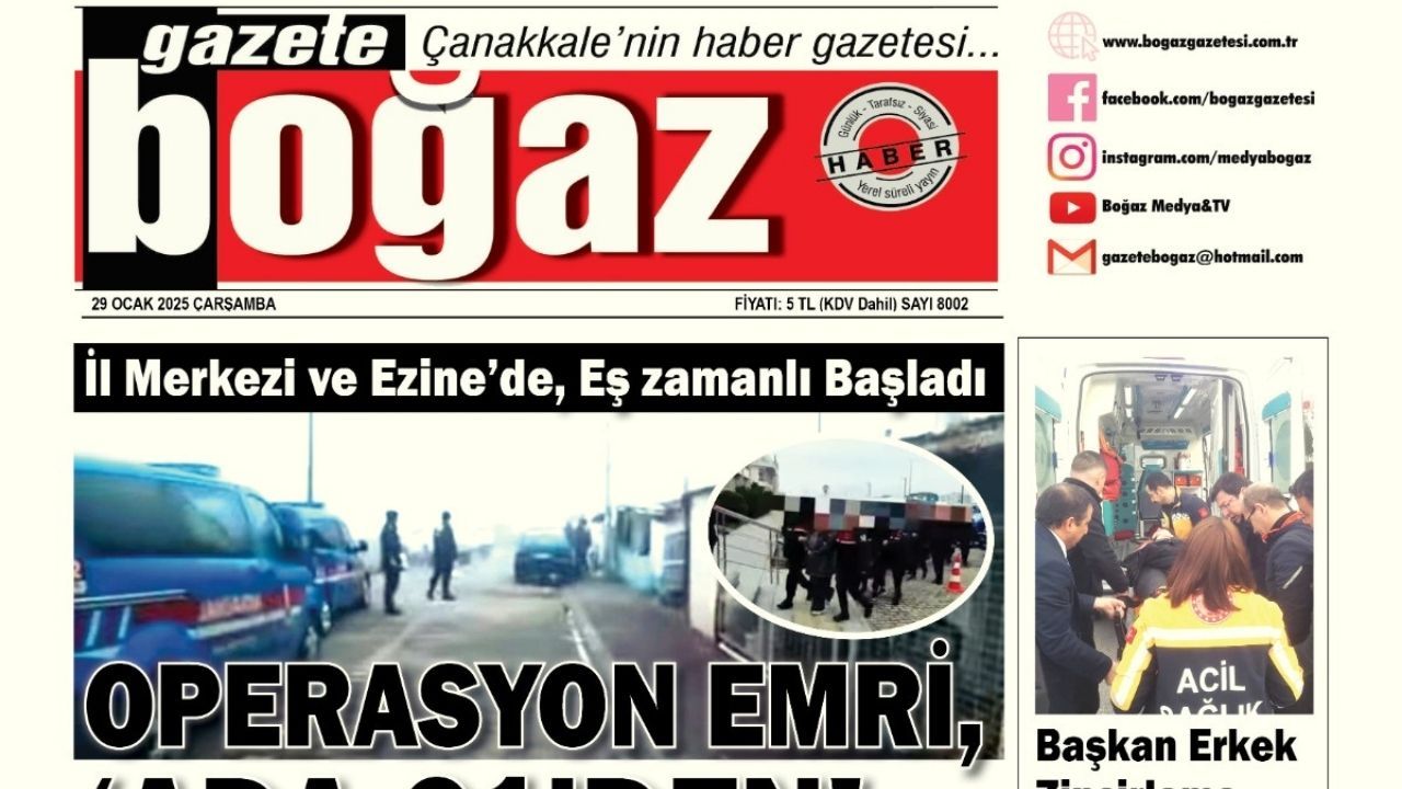 Çanakkale Boğaz Gazetesi 29 Ocak Çarşamba