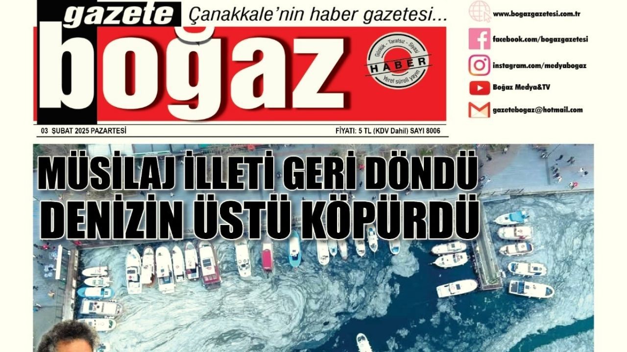 Çanakkale Boğaz Gazetesi 3 Şubat Pazartesi sayısı.