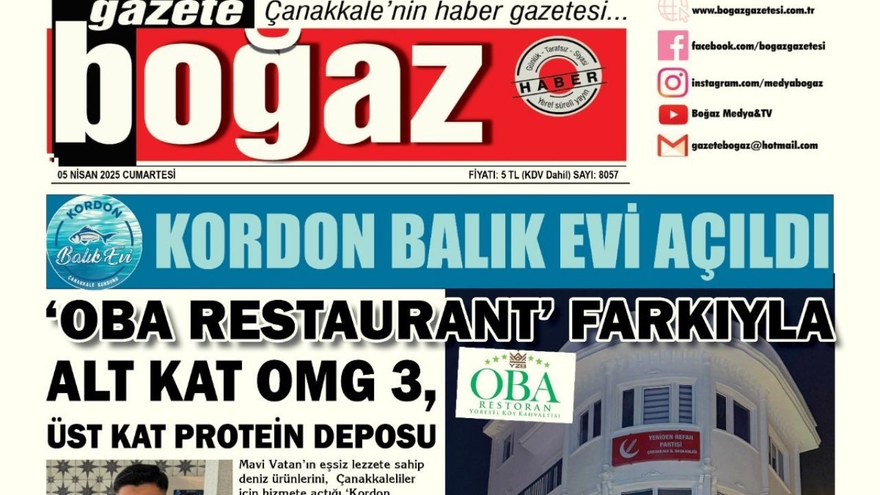 Çanakkale Boğaz Gazetesi 5 Nisan Cumartesi