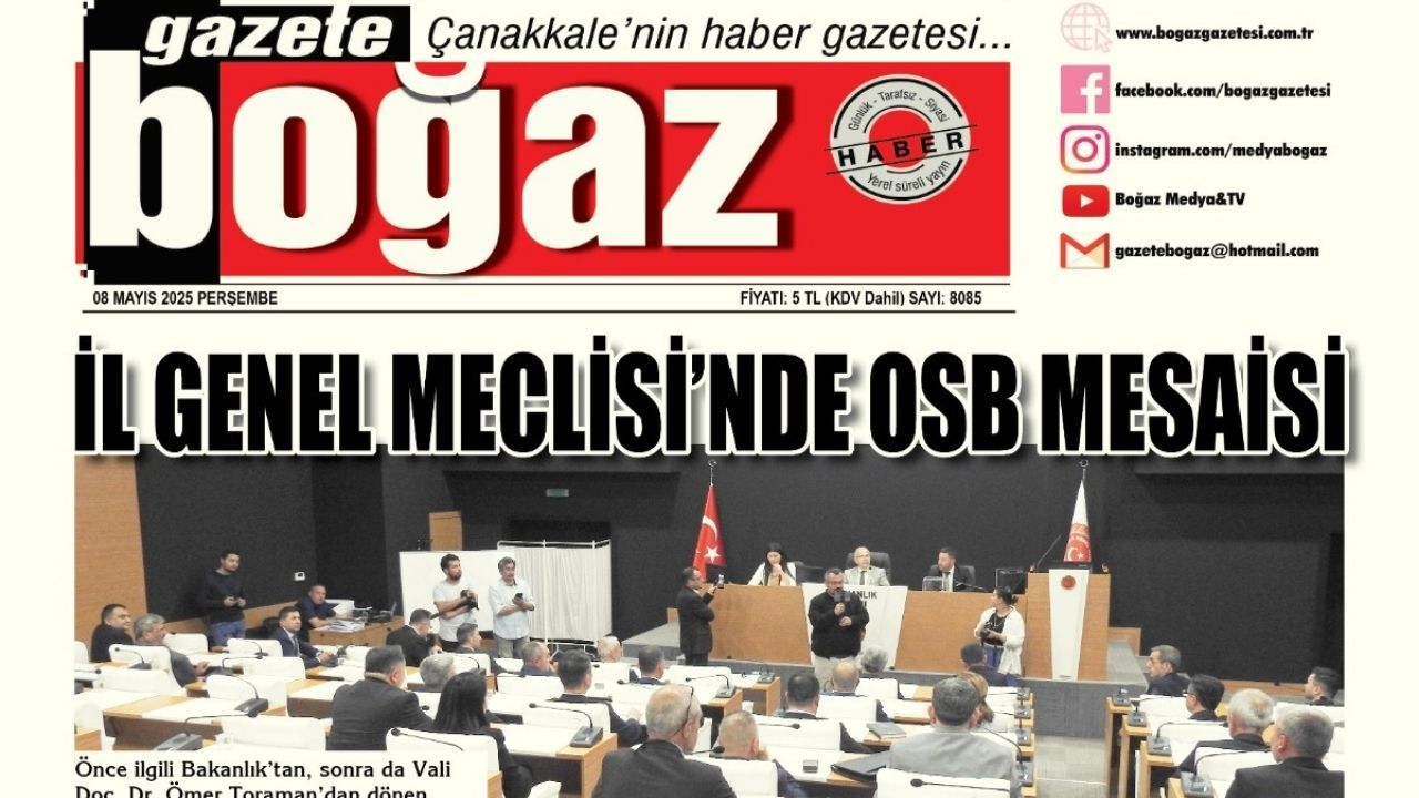 Çanakkale Boğaz Gazetesi 8 Mayıs Perşembe sayısı.