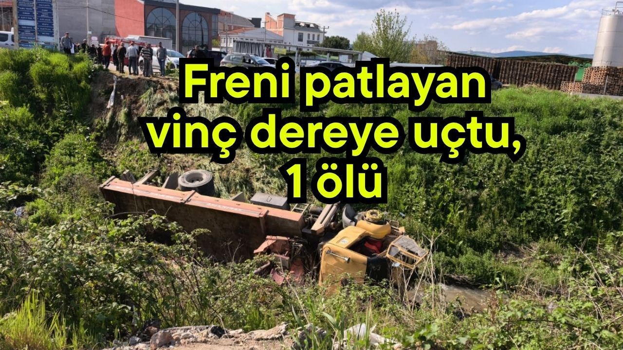 Kaza, saat 15.30 sıralarında İnegöl'ün kırsal Yeniceköy Mahallesi'nde meydana geldi. Kemal Doyan (44) yönetimindeki 16 0208 030 plakalı vinç, iddiaya göre yokuş aşağı inerken frenlerinin patlaması sonucu kontrolden çıktı. Yusuf A. yönetimindeki 16 BBP 055 plakalı otomobil ile çarpışan vinç, hızla yoluna devam ederken sürücüsü araçtan atladı. Vinç ise dere yatağına uçarak devrildi. Kaza yerine 112 ve Jandarma Komutanlığı ekipleri sevk edildi. Sağlık ekipleri sürücünün hayatını kaybettiğini belirledi. Sürücünün, kaza yerine gelen yakınları gözyaşı döktü.