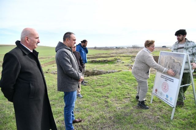 Tekirdağ Valisi Recep Soytürk, Süleymanpaşa ilçesi Karaevli Mahallesi'ndeki Heraion-Teikhos (Hera'nın Şehri) Antik Kenti'ni ziyaret ederek, antik kent hakkında bilgi aldı.