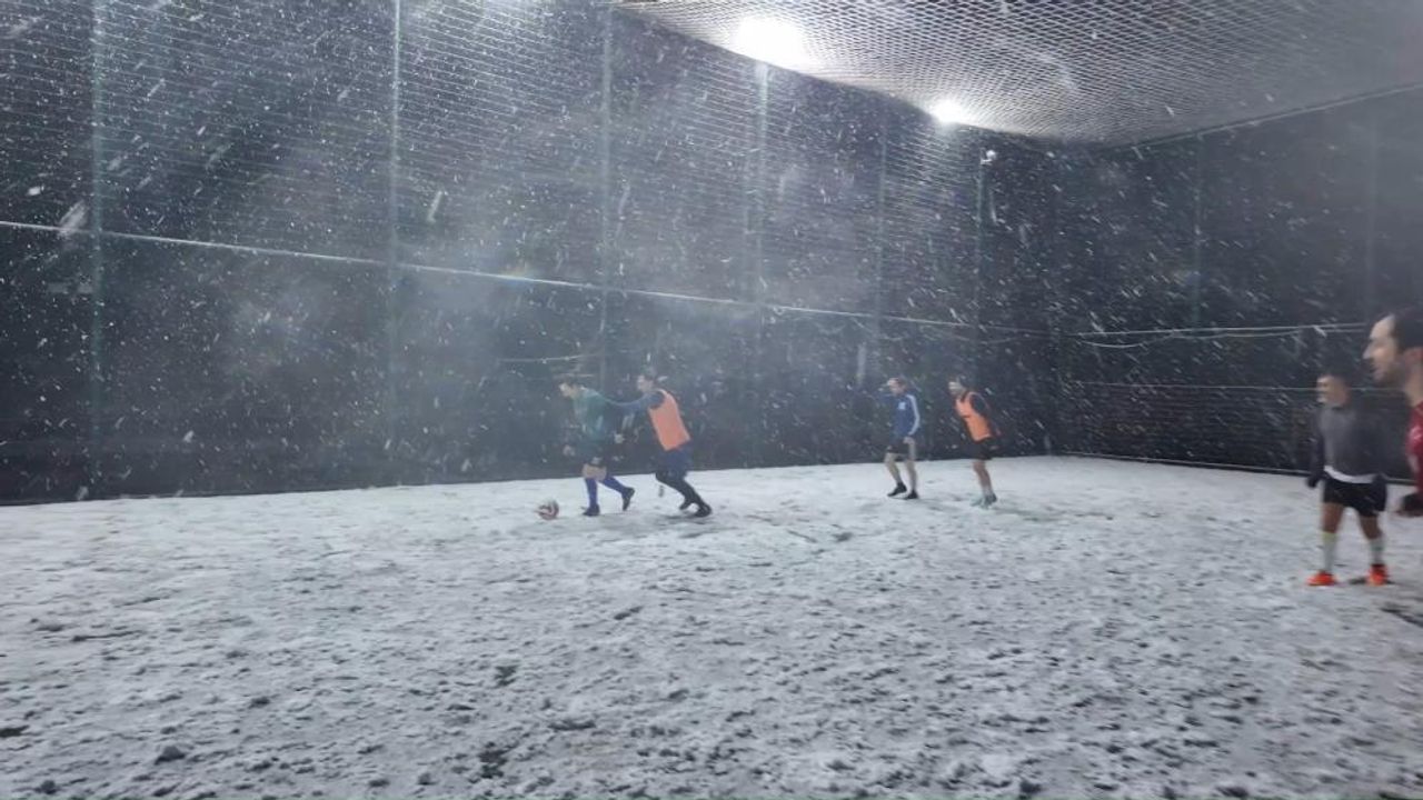 İstanbul’da akşam saatlerinde başlayan sağanak yağış, ilerleyen saatlerde yerini kara bıraktı. Kısa sürede etkisini artıran kar yağışı nedeniyle parklar, sokaklar ve çatılar beyaz örtüyle kaplandı. Soğuk havaya ve kar yağışına rağmen Maltepe’de halı saha maçı yapan bir grup futbolsever, karşılaşmalarını yarıda bırakmadı. Zemin şartlarının zorlaşmasına rağmen maçlarına devam eden oyuncular, halı sahada adeta beyaz örtü üzerinde mücadele etti.