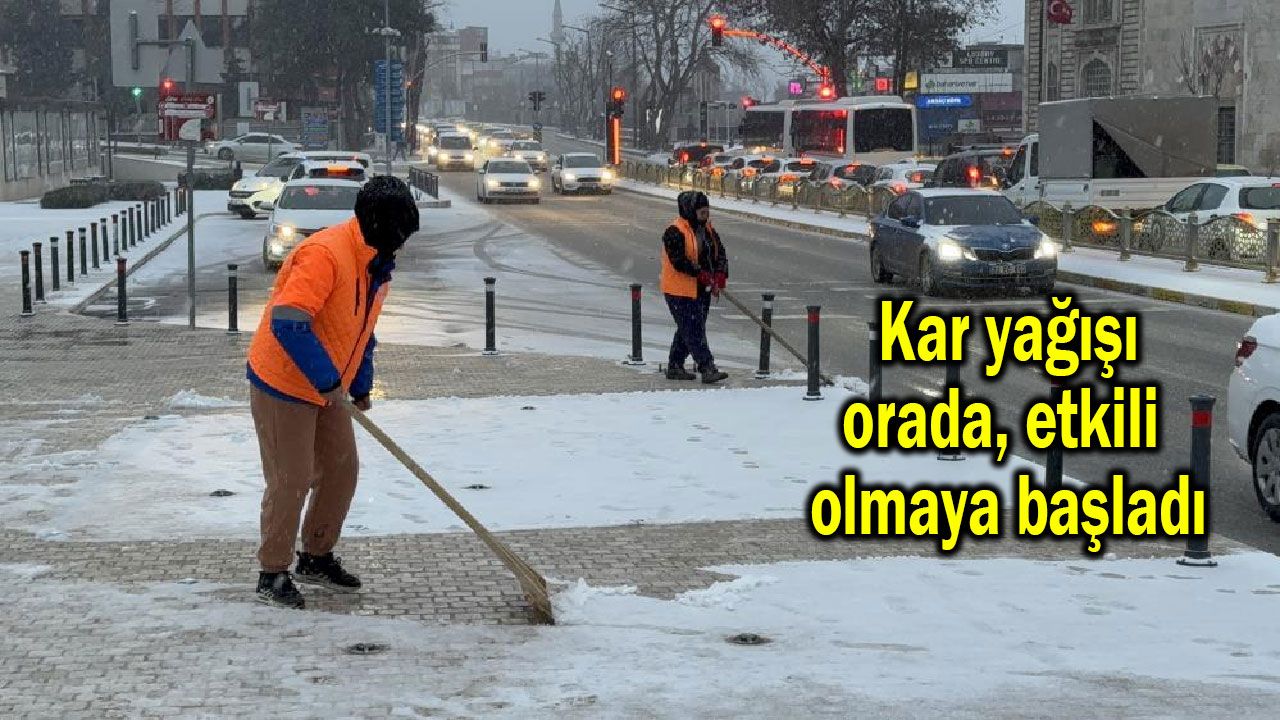 Edirne’de sabah saatlerinde başlayan kar yağışı etkisini artırarak devam ediyor.