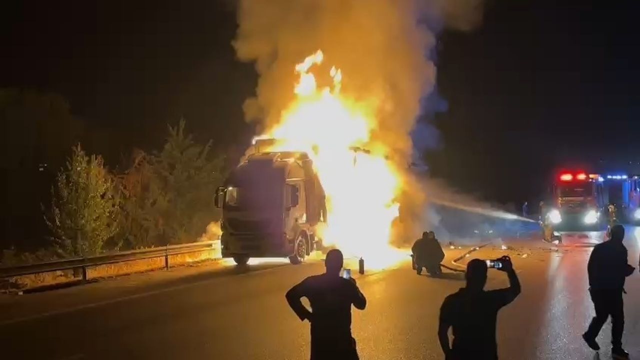 Yangın, Bursa'da merkez Nilüfer ilçesi Görükle Mahallesi'nde meydana geldi. Edinilen bilgiye göre, kargo yüklü tır henüz bilinmeyen bir sebepten dolayı bir anda alev aldı. Sürücü tırı hemen yol kenarına çekerek durumu itfaiye ekiplerine bildirdi. Olay yerine gelen itfaiye ekipleri yangına müdahale etti. Alev topuna dönen tır, kullanılamaz hale geldi. Yangının çıkış sebebi araştırılıyor.